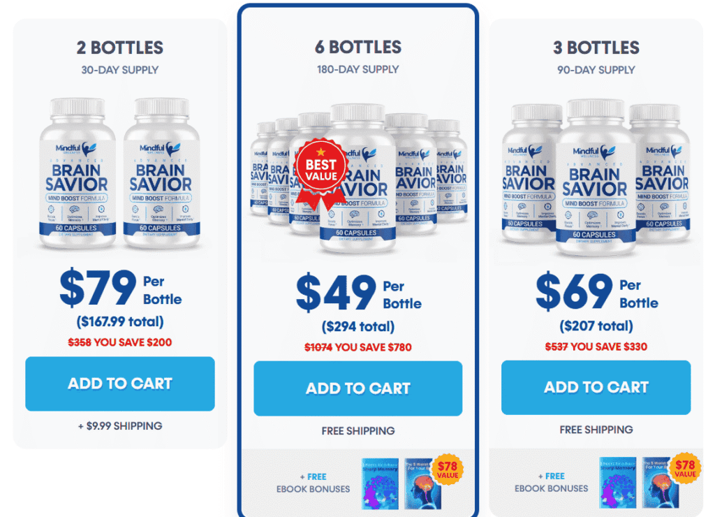 Brain Savior is available through official online channels, with multiple package options designed to suit different usage needs and budgets. Pricing varies depending on the number of bottles selected, and larger bundles offer better overall value.