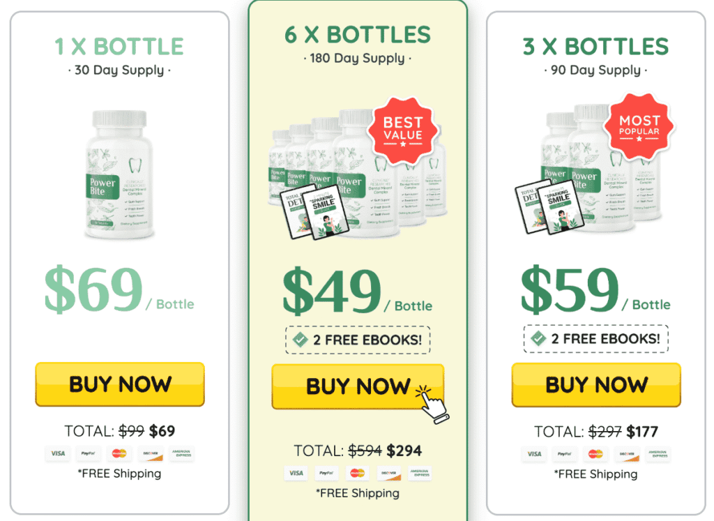 PowerBite is available in three bundle options. Larger packages offer biggest savings and ensure you don’t run out before results settle in.